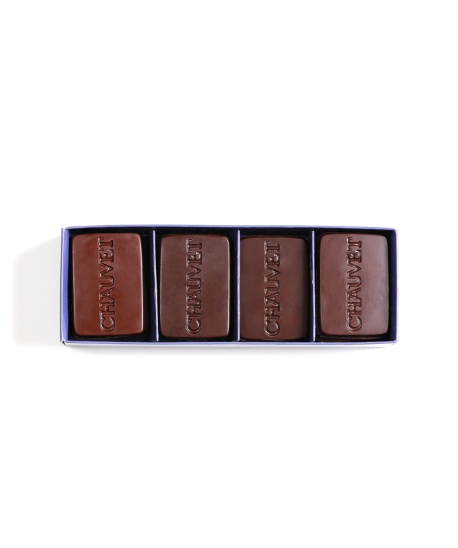 Un chocolat au lait crémeux issue d’une couverture de chocolat signature, assemblage de cacaos d’origine Côte d’Ivoire, Ghana, Équateur et Vénézuela.