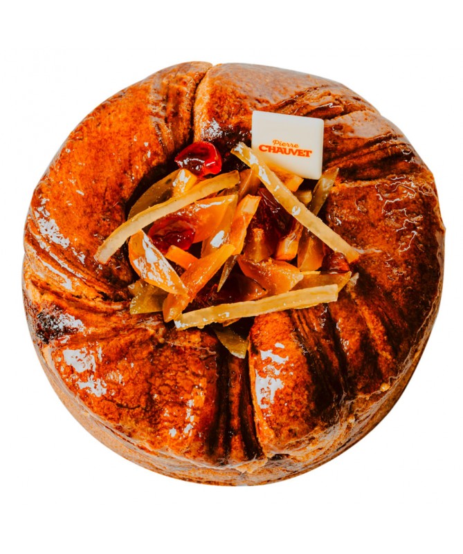 Couronne des rois majestueusement gourmande mêlant fruits confits, brioche et amandes de Provence.