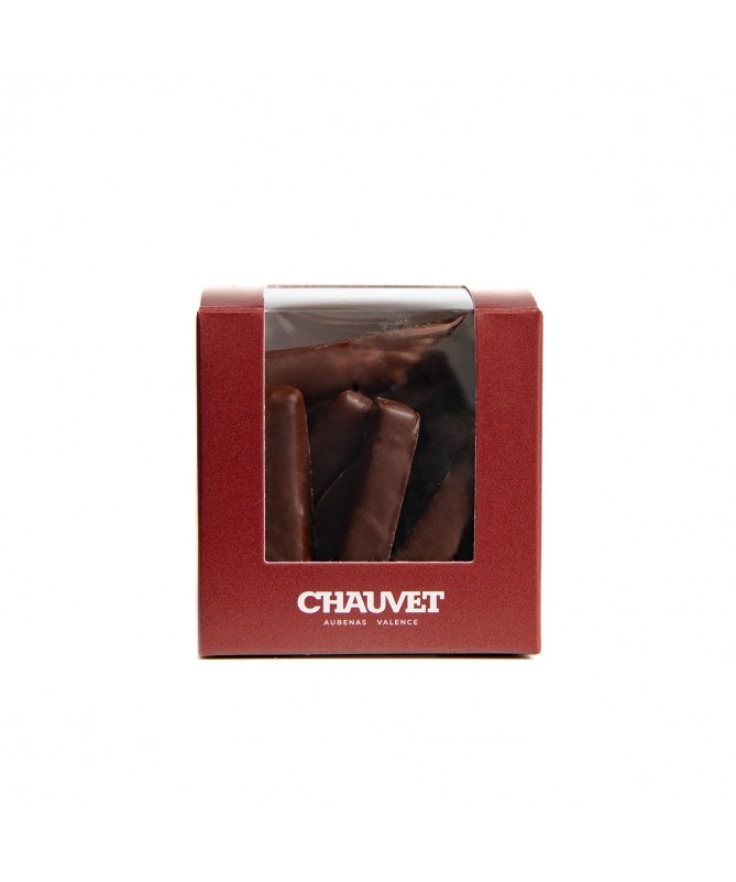 Bâtons de pomelo confits, peu sucrés et enrobés de notre chocolat noir signature