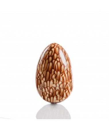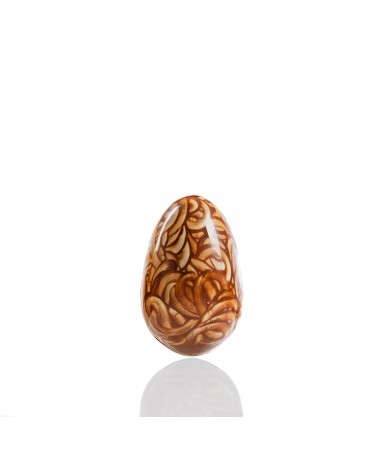 Quand l'œuf de Pâques a des airs de fruits exotiques ! Moulage de Pâques garni de petits œufs et d'un assortiment de friture chocolat noir et chocolat au lait.