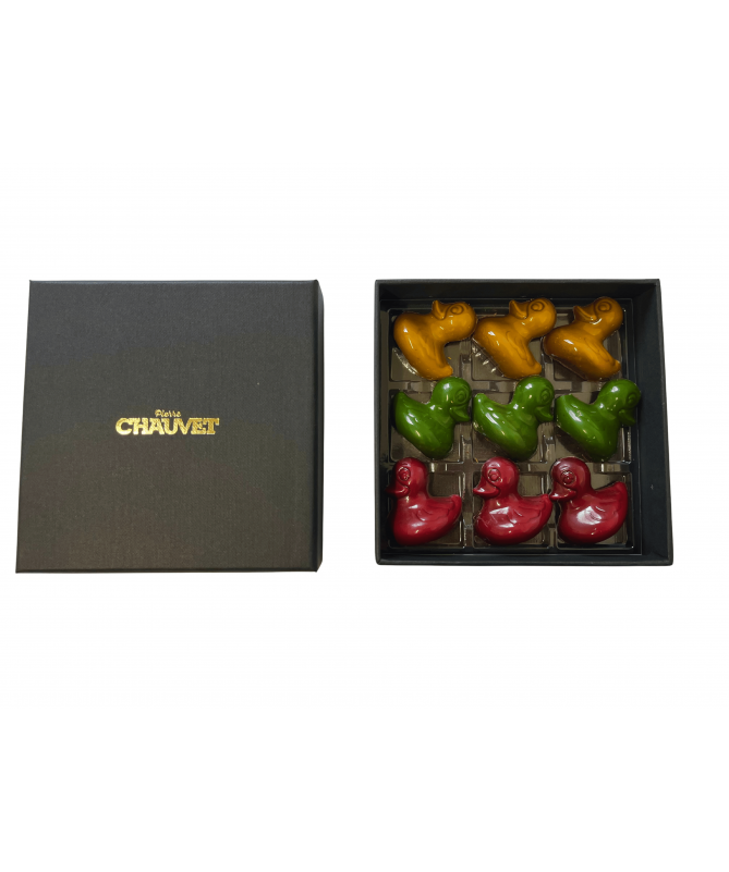 Il est tout rond et tout mignon ce petit moulage en forme d'hippopotame. Il est également garni de petits œufs et d'un assortiment de friture chocolat noir et chocolat au lait.