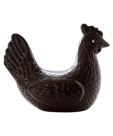 Ambassadrice de la basse-cour, tout de chocolat vêtue et garnie de petits œufs et d'un assortiment de friture chocolat noir et chocolat au lait.