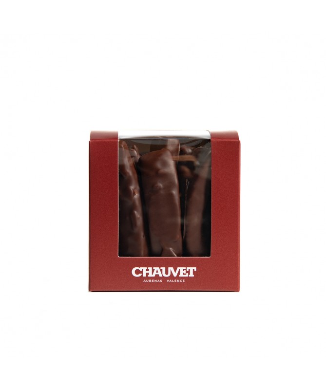 Noix de pécan caramélisées chocolatées : Noix de pécan, sucre, fleur de sel, sucre glace, cacao, chocolat au lait (poudre de lait, pâte de cacao, sucre, beurre de cacao, lécithine de soja).