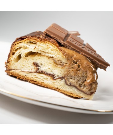 Un feuilletage viennois croustillant, une frangipane généreuse et authentique, réalisée à partir d’une poudre d’amande brute de notre fidèle amandiculteur Hervé Lauzier, de la Drôme, couplée à des pignons de pin entiers torréfiés apportant rondeur et richesse en bouche.