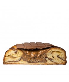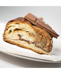 Avec comme base une brioche tressée, elle s’inspire de la traditionnelle couronne des rois. Son tressage frangipane et son cœur coulant de praliné lui apporte la gourmandise et l’onctuosité d’une galette frangipane.