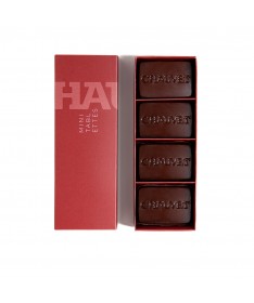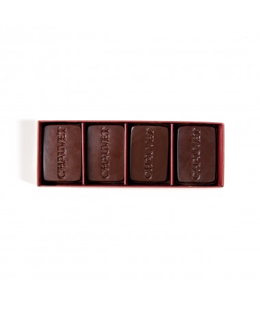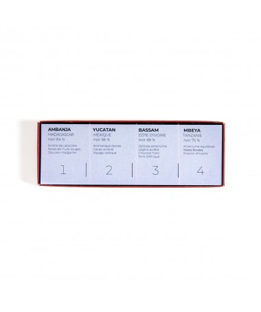 Chocolat au profil aromatique de caractère entre acidité et saveurs boisées, se ponctuant de notes de fruits rouges.